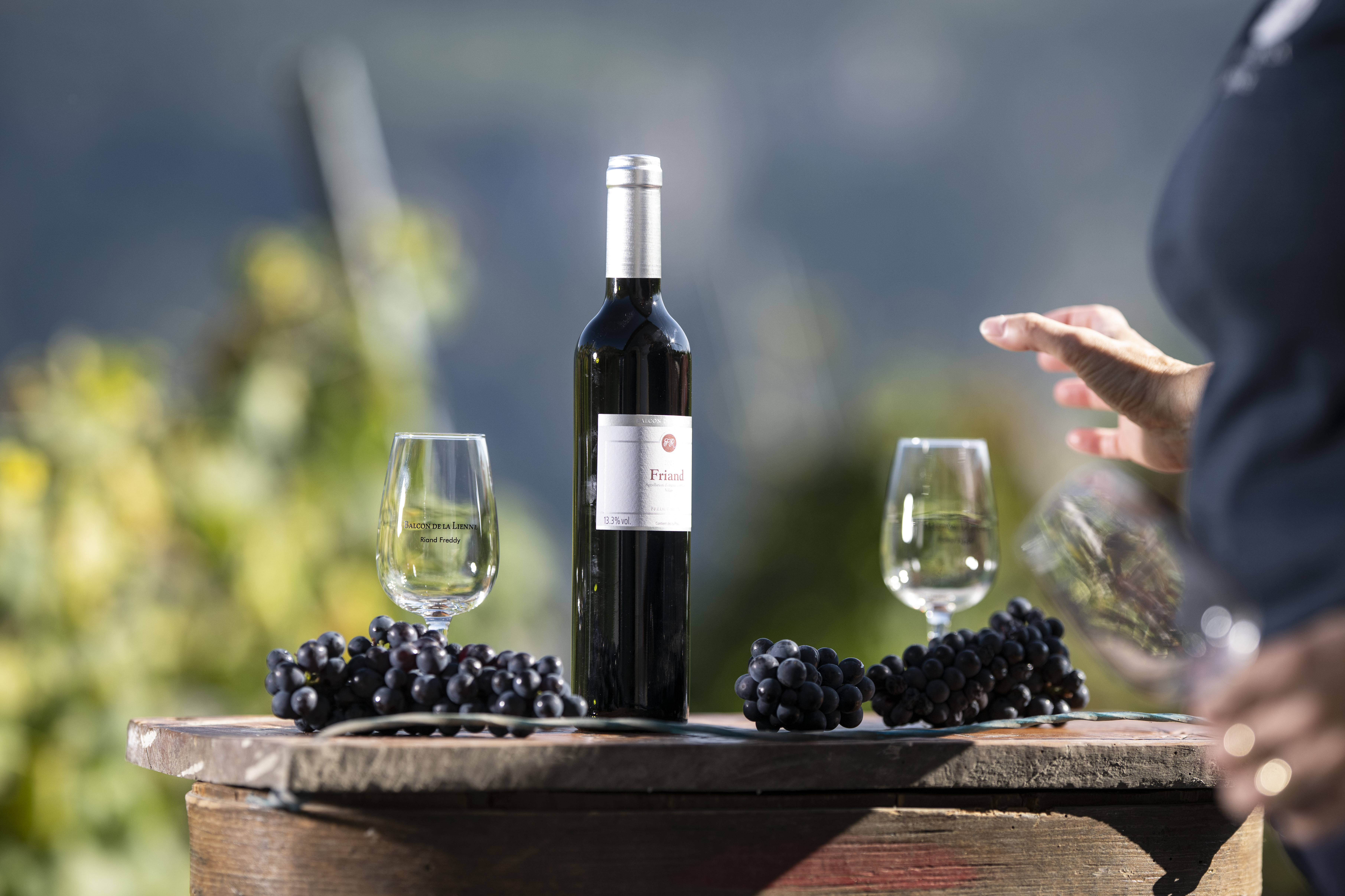 Freddy und Corinne Riand bauen die Weine mit viel Liebe und Leidenschaft aus und führen alle Arbeiten von der Rebe bis zur Flasche selbst aus ... Ihr Weinsortiment umfasst : Fendant, Œil-de-Perdrix, Pinot noir, Diolinoir und die rote Assemblage « Le Friand ».